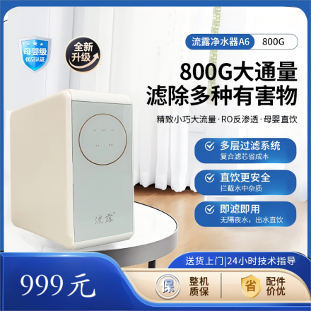 流露A6反滲透凈水器RO大流量800G無(wú)壓力桶999元